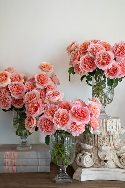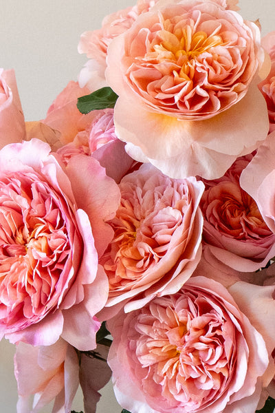 Phoebe is a quietly striking rose that blossoms into a rich flamingo-pink rosette. Her warm coral centre softly fades from apricot to natural pink, releasing a light fruity floral scent with hints of violet and red apple. From a modest bud, she opens with graceful elegance, revealing perfectly arranged petals forming a star-like heart with a delicate button eye.